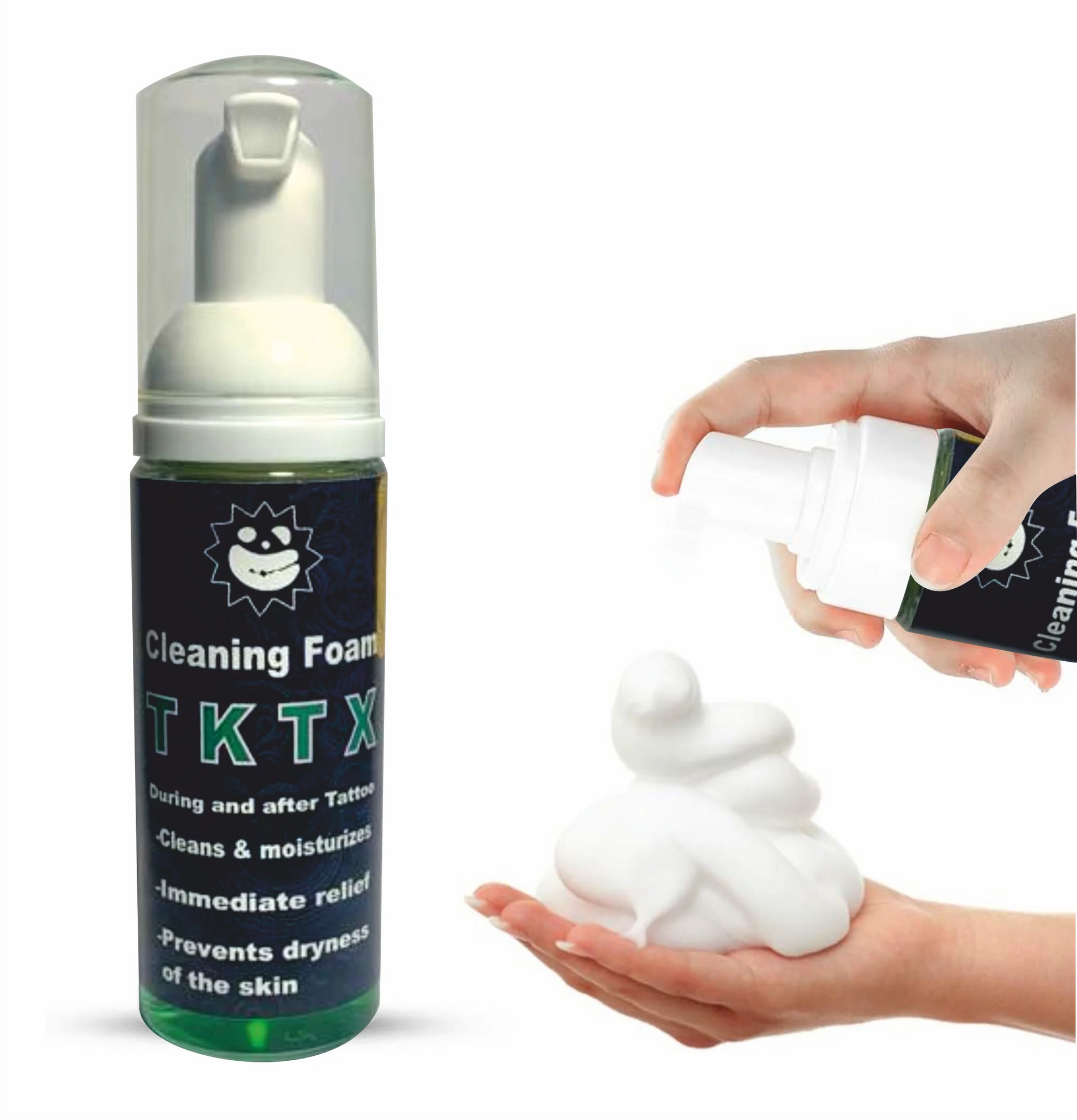 » TKTX espuma, limpa suavemente e acalma a irritação da pele graças ao seu teor de alantoína e aloe vera.